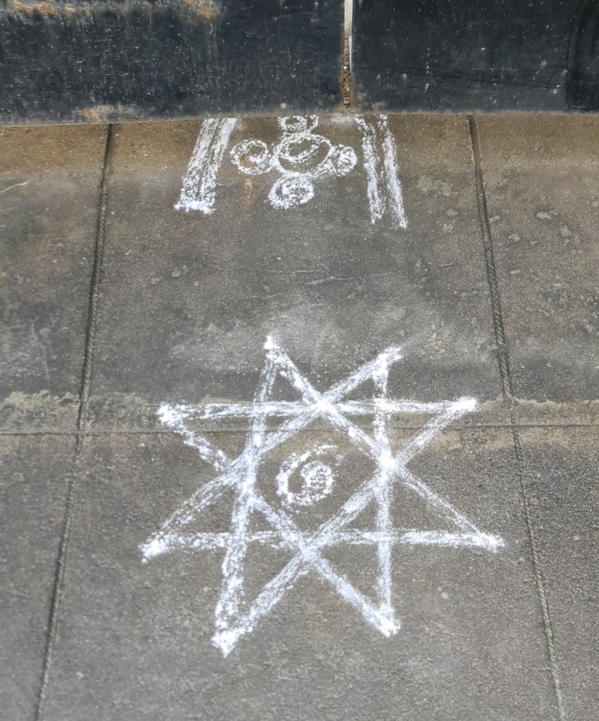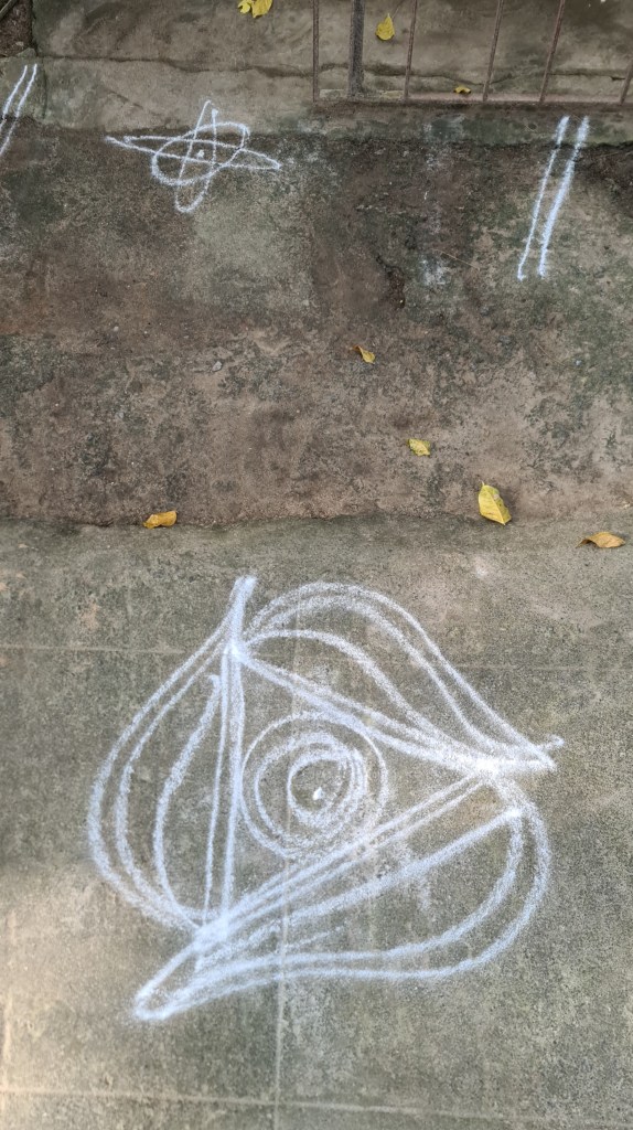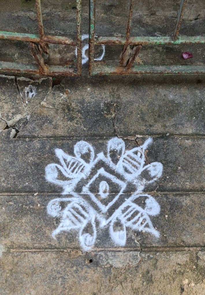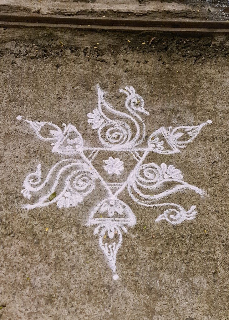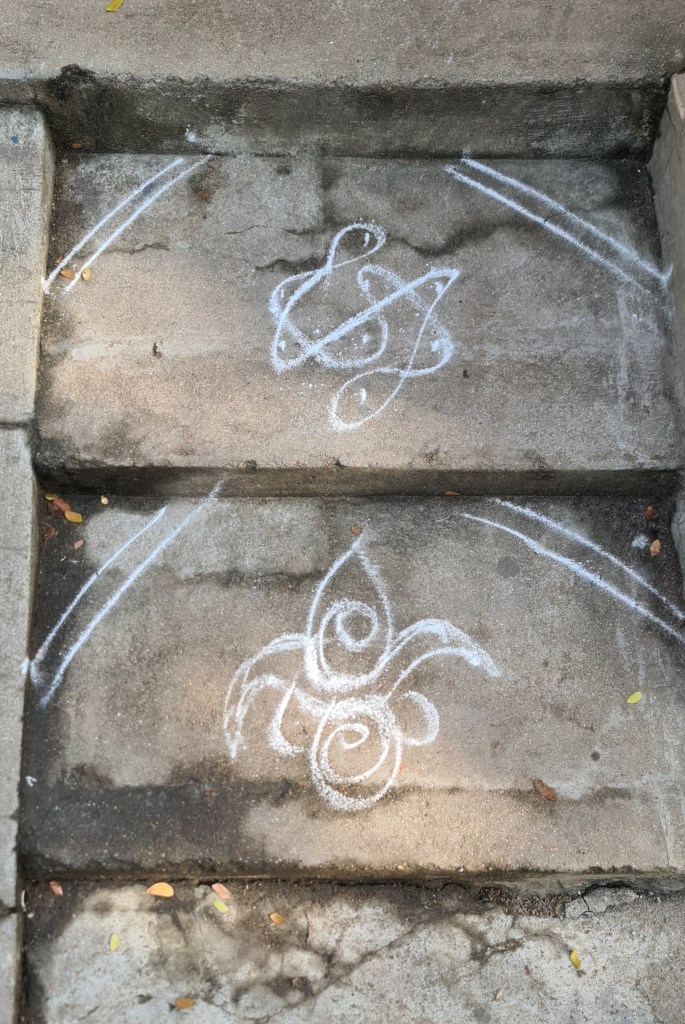 When walking around Chennai we noticed these chalk drawings in front of houses, most were fairly simple but some were more intricate and even coloured. I asked at the yoga manadrim and these were not chalk at all but rice flour. They are called kolams and are are drawn at dawn in front of your house to bring prosperity and to give back to nature as part of the lead up to the harvest festival Pongal.