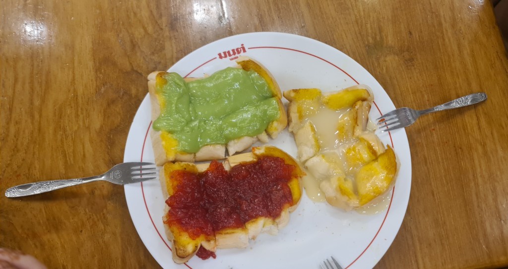 We were lucky enough to have a friend of M’s be our tour guide which was amazing. We ate a lot of good stuff – including going to the birth place of Pad Thai and a toast dessert place which was packed. We didn’t take as many food pics as I thought but that’s probably because we were too busy eating it.