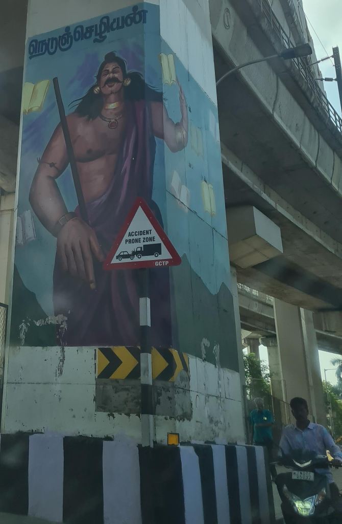 Random artwork abounds in India including on the bridge pylons on the main roads. It makes the concrete look a lot better and distracts you from the fear of having an accident.
