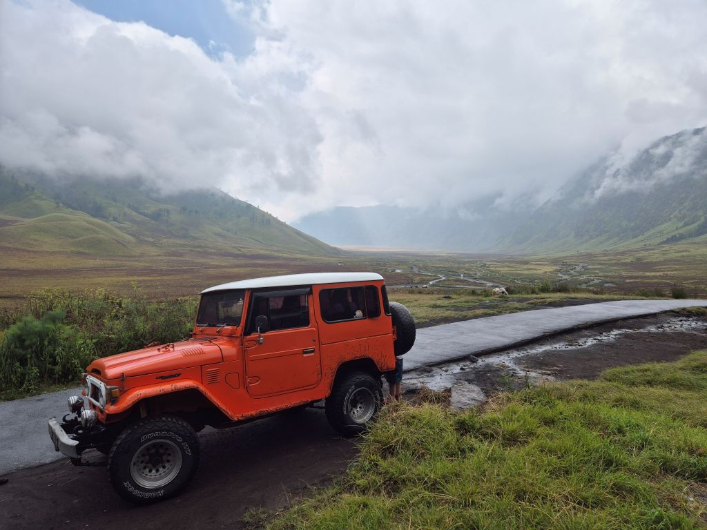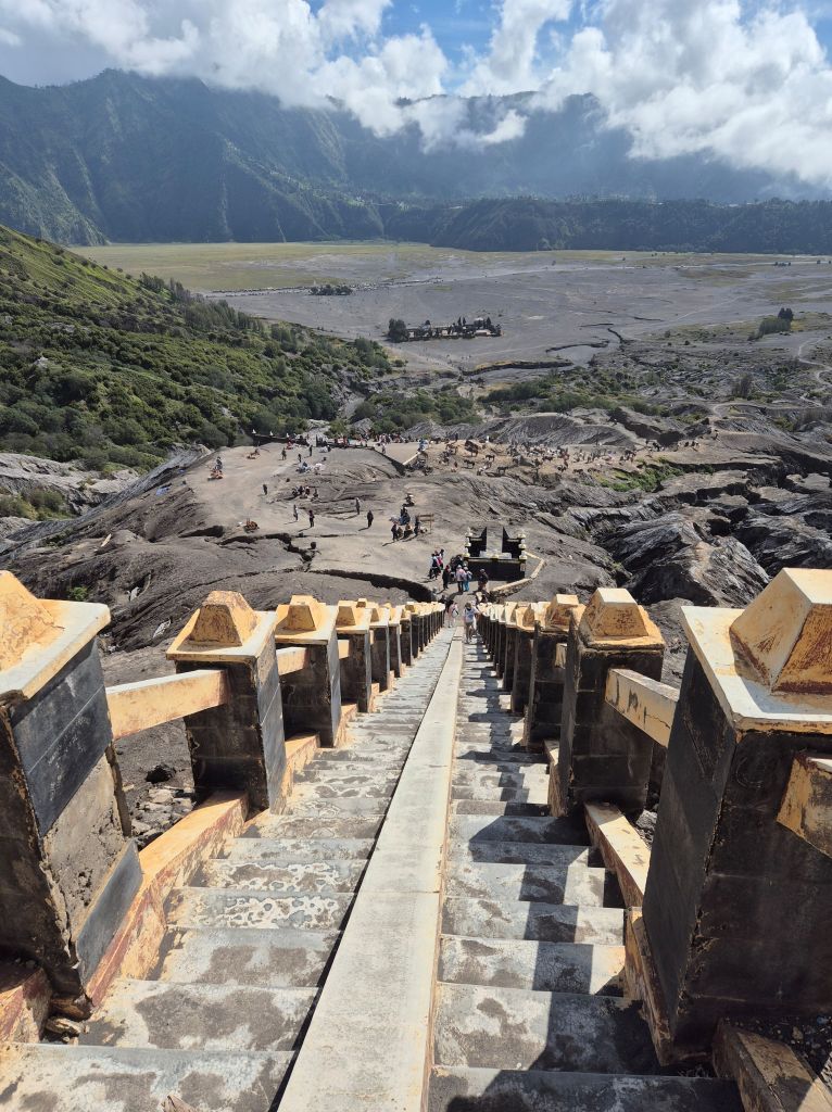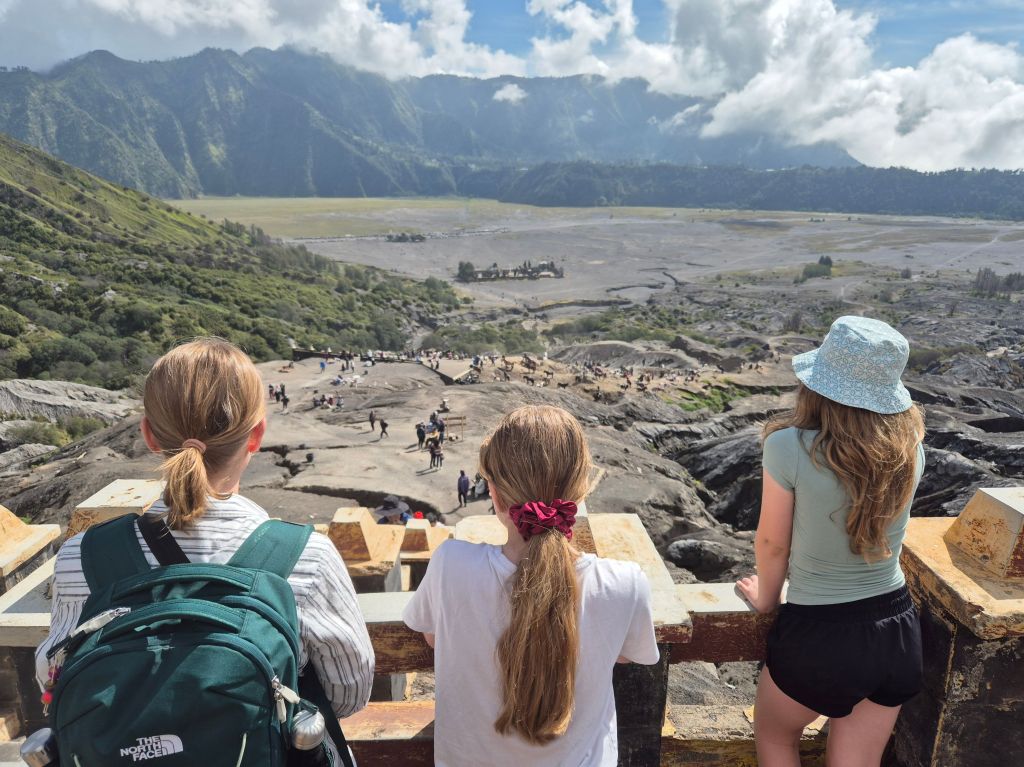 Java has loads of volcanos and many of which are active. One popular one is Mt Bromo and it’s usually visited at sunrise – which actually means getting a jeep about midnight and driving two hours to line up with other jeeps to wait for a couple more hours to see it. That sort of nights’ sleep doesn’t appeal to M & N on any day but with two kids as well there was no chance. So instead we had a 6am pickup to drive out to see it in the morning. Probably not as spectacular but still pretty impressive… and kinda scary to be able to see the extremely narrow road with sheer drops on either side that you need to take to get there!
