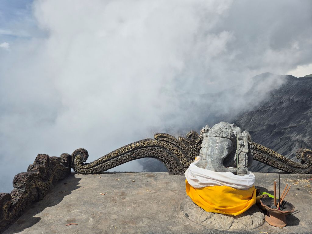 Finally at the top, there’s a narrow path where you can view the crater and give an offering.