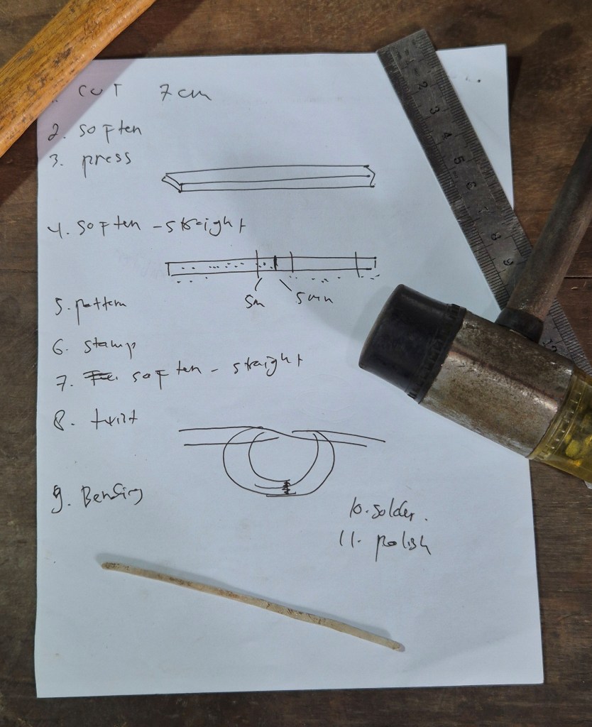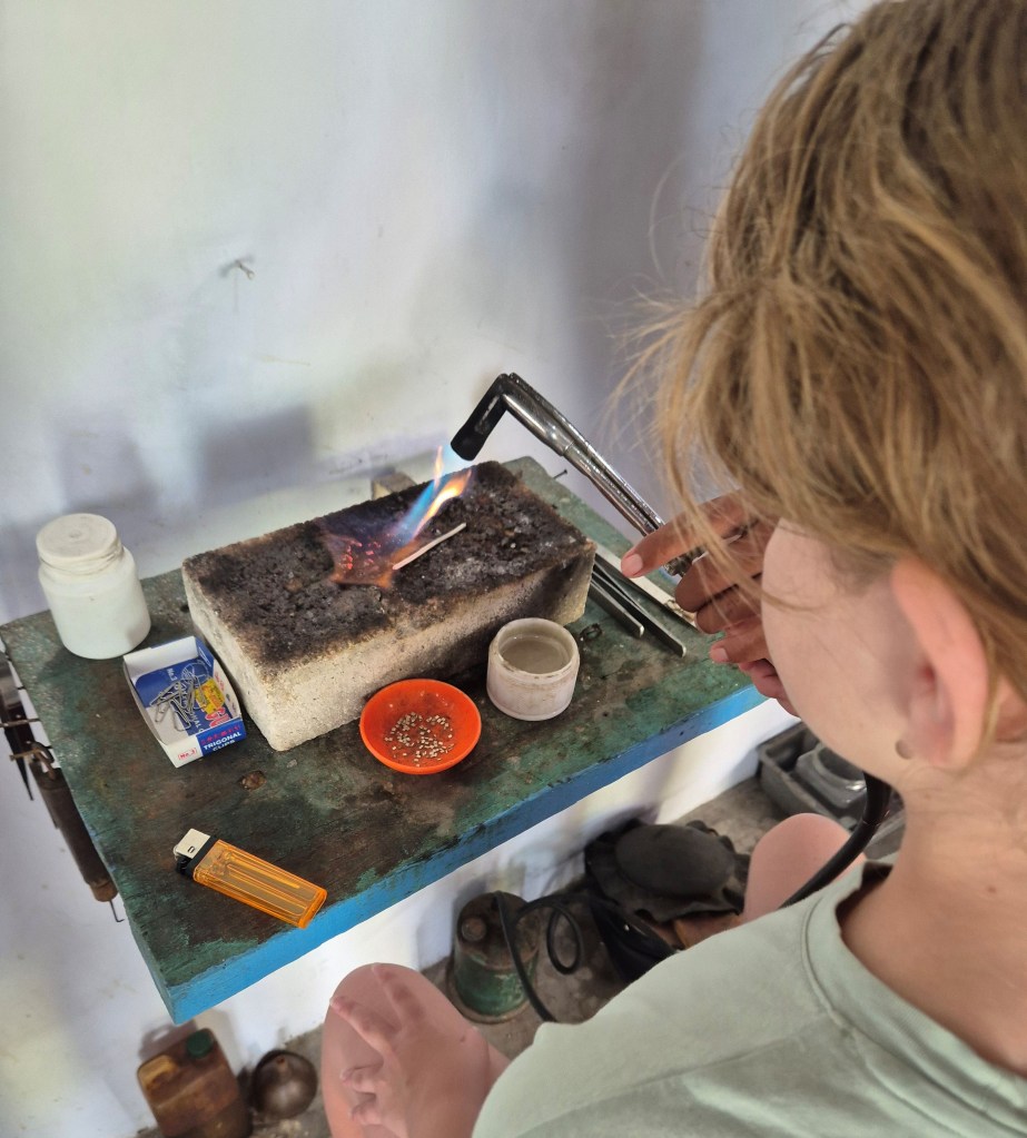 You do it all yourself and they check at each stage and adjust if required. The other person in our session made earrings as she’d already made a ring in Bali. Afterwards she said that this course was much more hands on – apparently in Bali they do most of it for you. Which is probably safer, given the mini flame thrower we all got to use and the jar of sulfuric acid nearby…