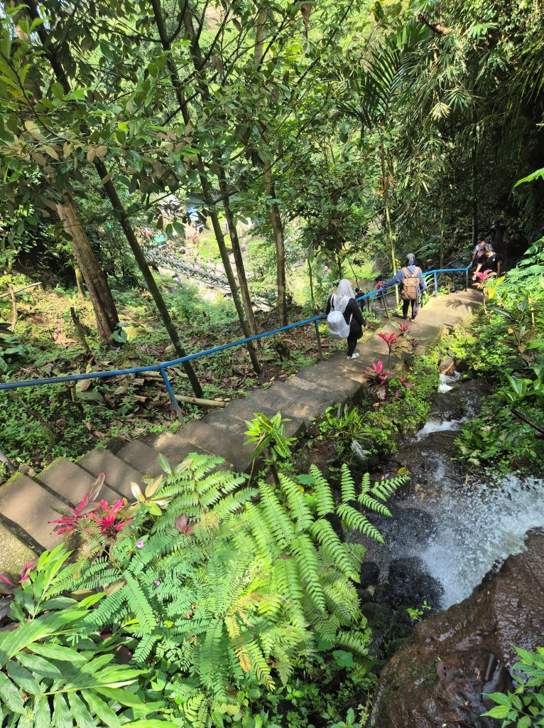 This waterfall has many levels and therefore MANY steps. And did I mention the heat & humidity? So many steps down that you are already cursing having to come back up as you go down. At least there was a halfway pool where locals were jumping in from the platforms on either side (not for us!).