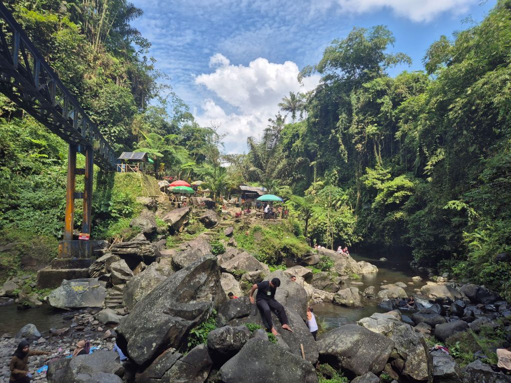 After a paddle and a drink we decided to head to the hot springs (Pancuran Pitu)… and this is where the fun really began. Firstly, Grab’s mapping tool is pretty bad and we’d had trouble before with locations but we couldn’t find the hot springs on the Grab map (even after comparisons with the same area on Google maps). A chat with some helpful locals revealed their skepticism in us getting a Grab to come out to where we were, let alone get to the hot springs. After about 20 mins we gave up and went to the back up plan of another waterfall where you could swim.