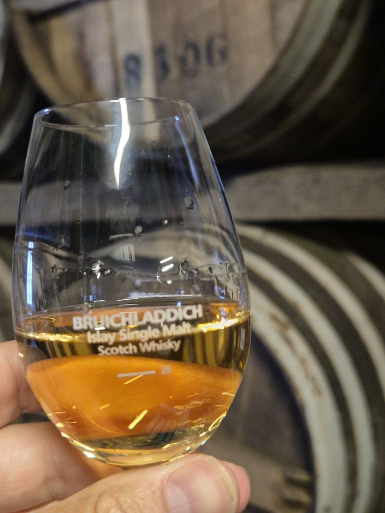 So we booked into a warehouse tasting session at the nearest distillery to where we were staying, at the excellent Bruichladdich Distillery. We were greeted with classic Islay weather (wind and rain) but quickly settled into our seats made from old casks, surrounded by aging whisky in the dimly lit warehouse. It was magic.