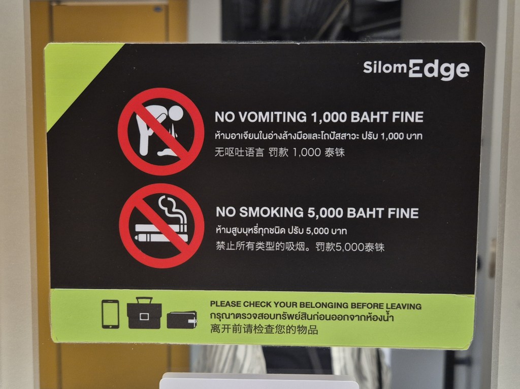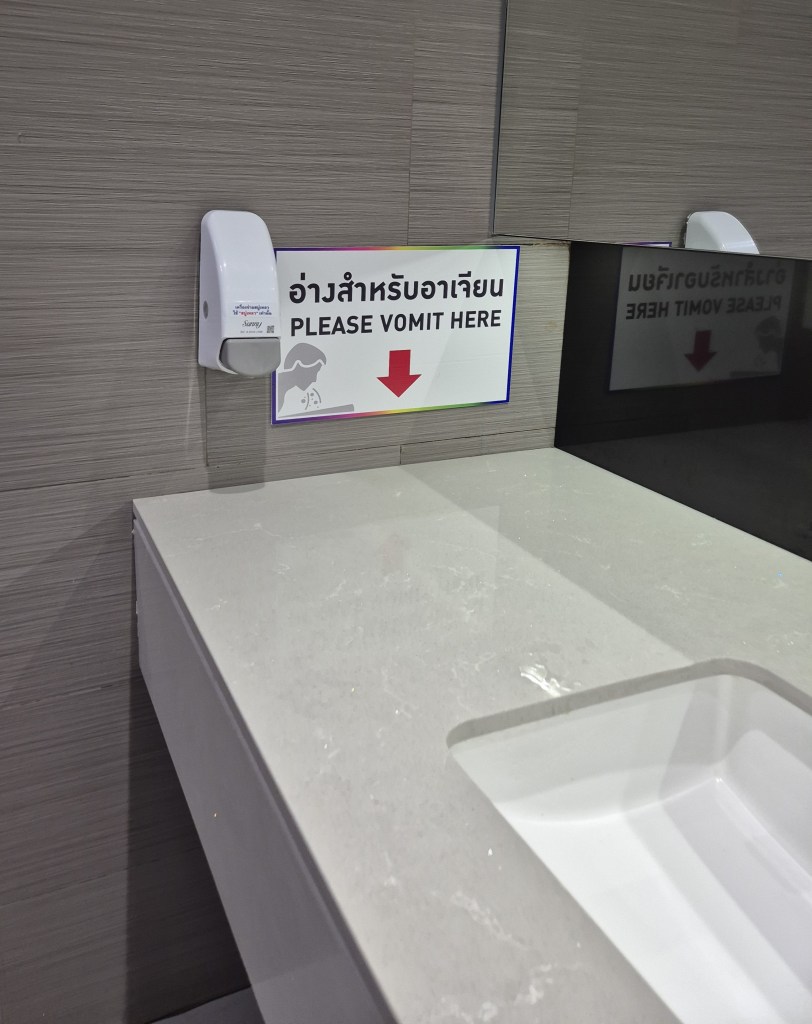 The first is: more than one sign about vomiting in public bathrooms (like in a shopping mall for example). The first sign surprised me but I guess some places are unlucky and then feel the need to put up a sign. But then we spotted a similarly themed one a bit later in a completely different place.
