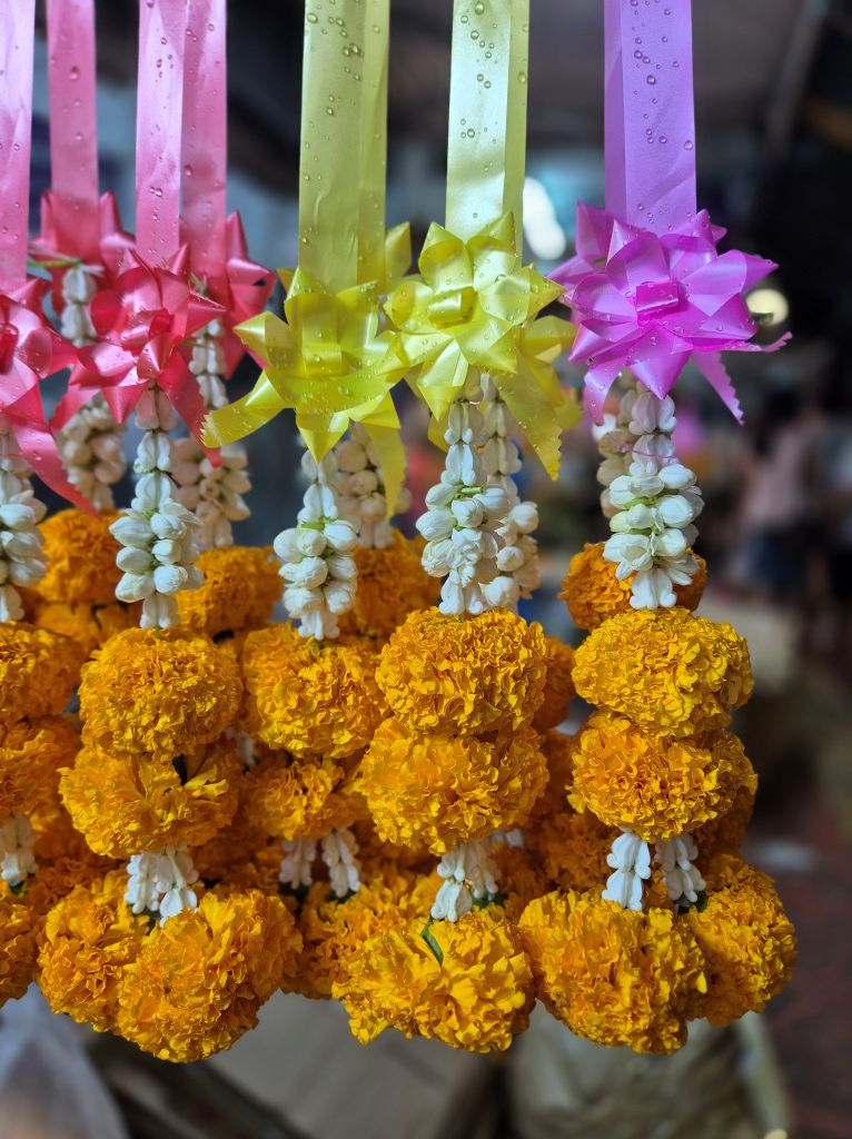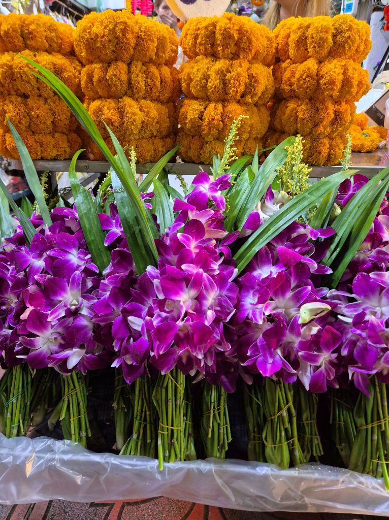 We tuk tuked (not sure that’s actually a verb but I am going with it) to the flower market street where they sell flowers 24 hours a day. It’s a bit strange that there’s such a demand but I guess there is! Lots of religious offerings probably help. Marigolds, jasmine, orchids, lotuses and loads more I have no idea about but are very pretty 😍