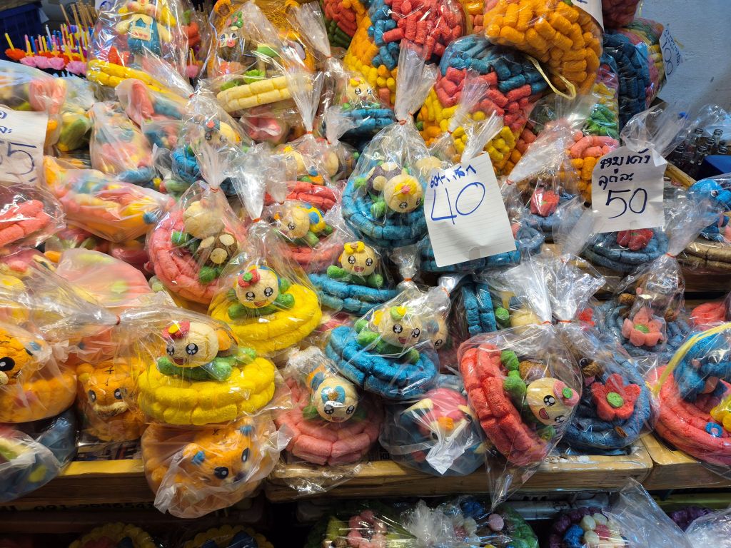 It was almost the festival of Loy Krathong, a festival of light where you float small, handmade floral creations on water with candles to make wishes for the future and ask for forgiveness for the past. There has been an effort to ensure the krathongs are made of biodegradable materials (banana leaves, flowers, bread) that don’t pollute the waterways. Some are made from the cornstarch beans that often come in packaging with (garish) colouring to appeal to young kids. (Yes, including labubu-like ones!)