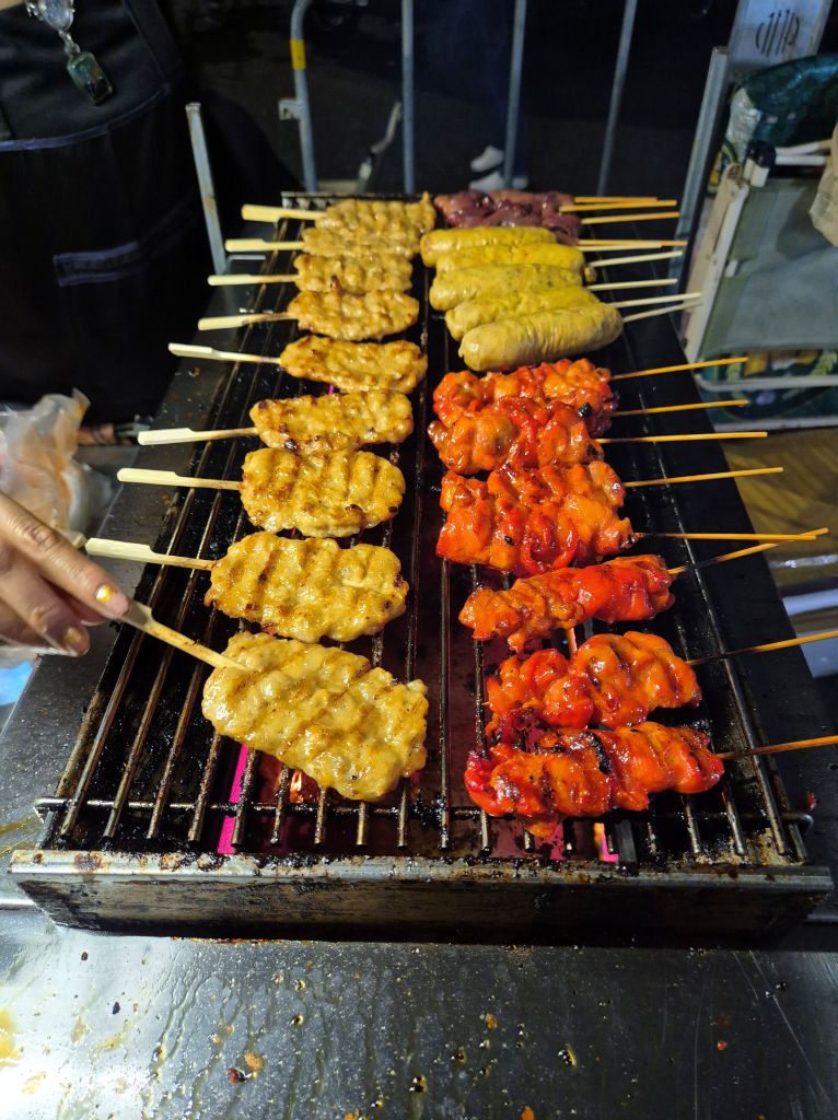 We did managed to fit in a little snack of skewers of marinated meat, cooked over coals on the roadside. (See there is some food on this tour!)