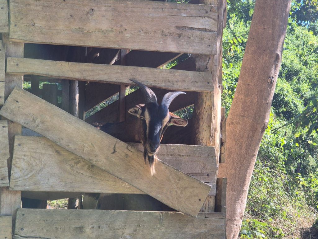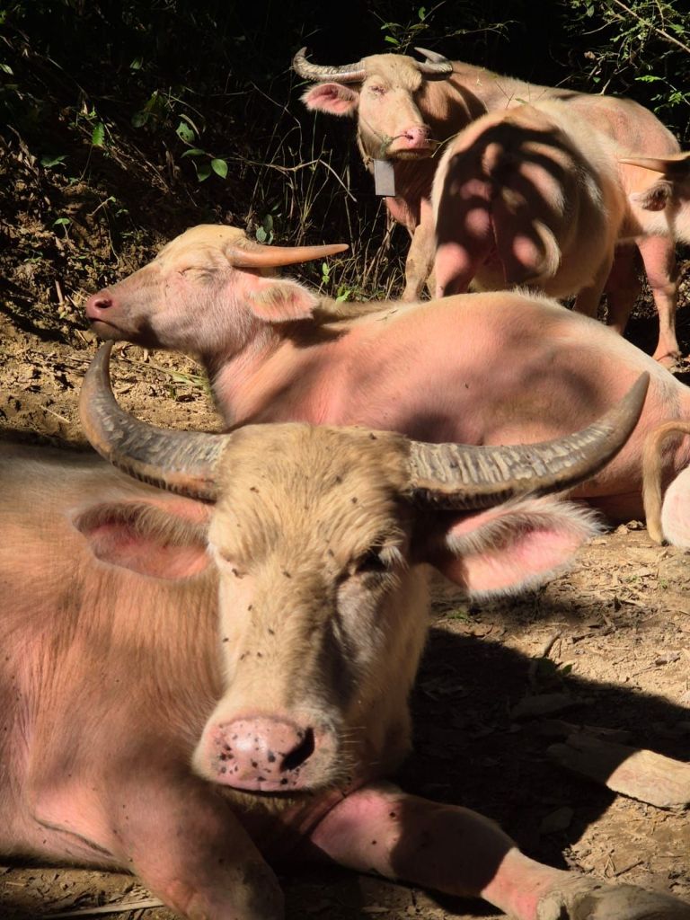 We stopped along the way to do a short trek through farm land to visit a waterfall. We passed a few curious animals along the way, including albino buffalo!