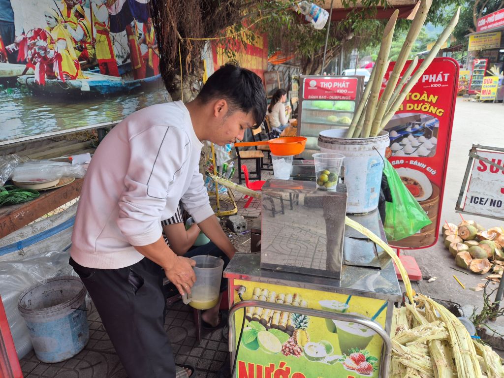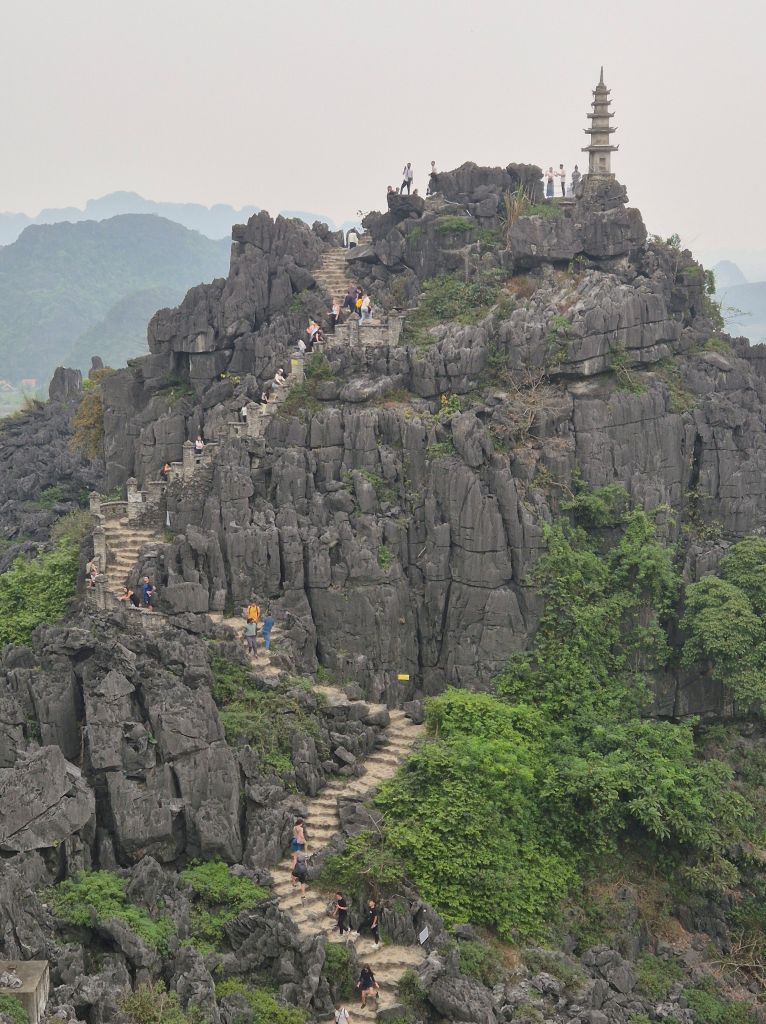 Next stop was a walk up Dragon Mountain for a view over the valley. Unfortunately, this was quite affected by the same smog as Hanoi, but we got to see Monkey Magic statues (childhood flashback!) and M got a drink of cane sugar juice to replenish his energy.