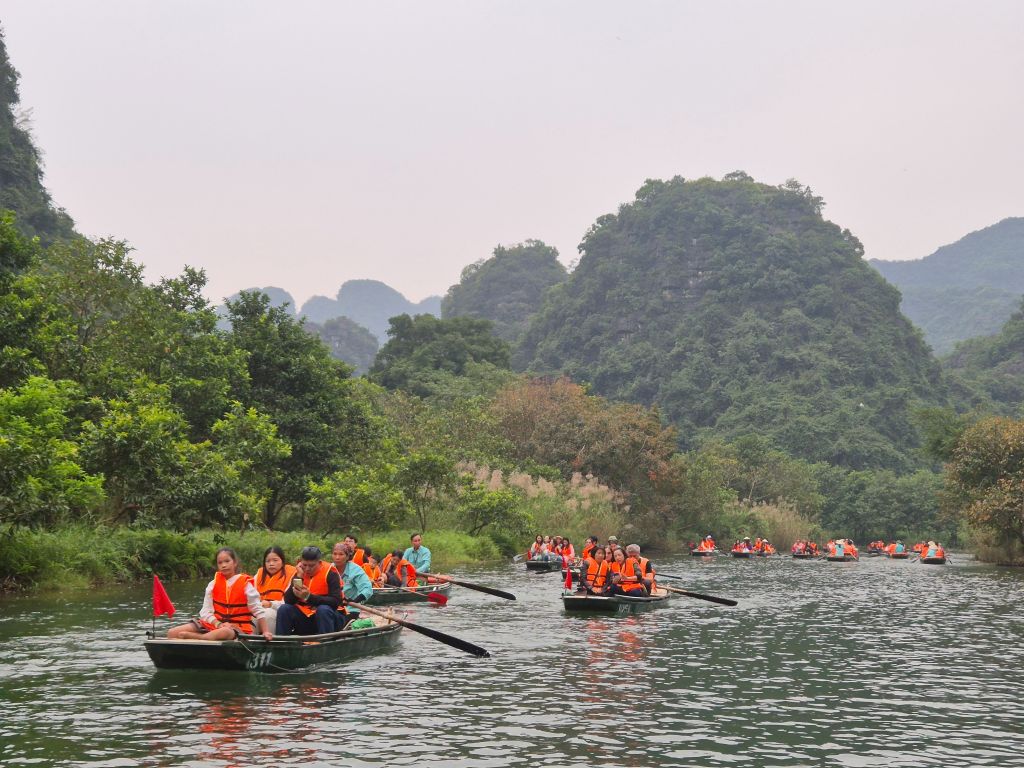 The first day we get picked up fairly early, on a luxury bus with maybe 20 others and many don’t have luggage. As it turned out, we were to do the one day tour but then stay at a hotel in Ninh Binh for two nights while the day trippers returned to Hanoi. So we packed in the activities onto one day and then had a rest day before getting picked up to go to Halong Bay.