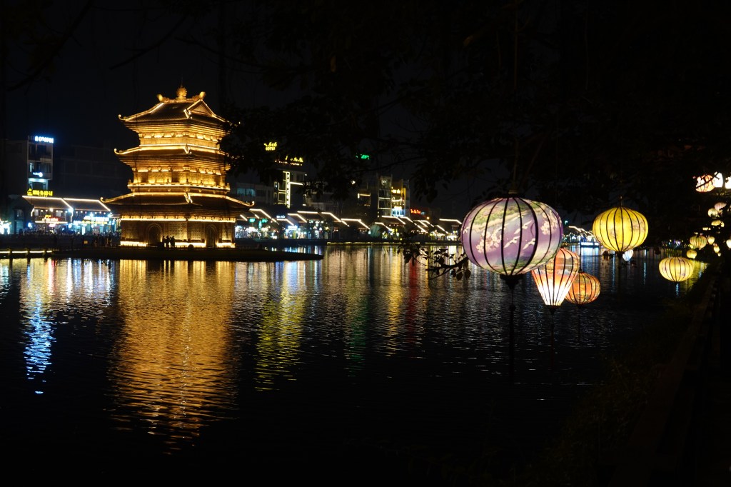 We had a relaxed day, walking to the nearby village for coffee / lunch and then had dinner in the nearby town. We wandered around a lake with a lovely lit up pagoda with loads of lanterns and ate pizza (for a change).