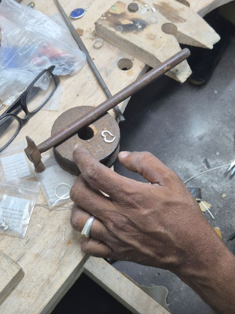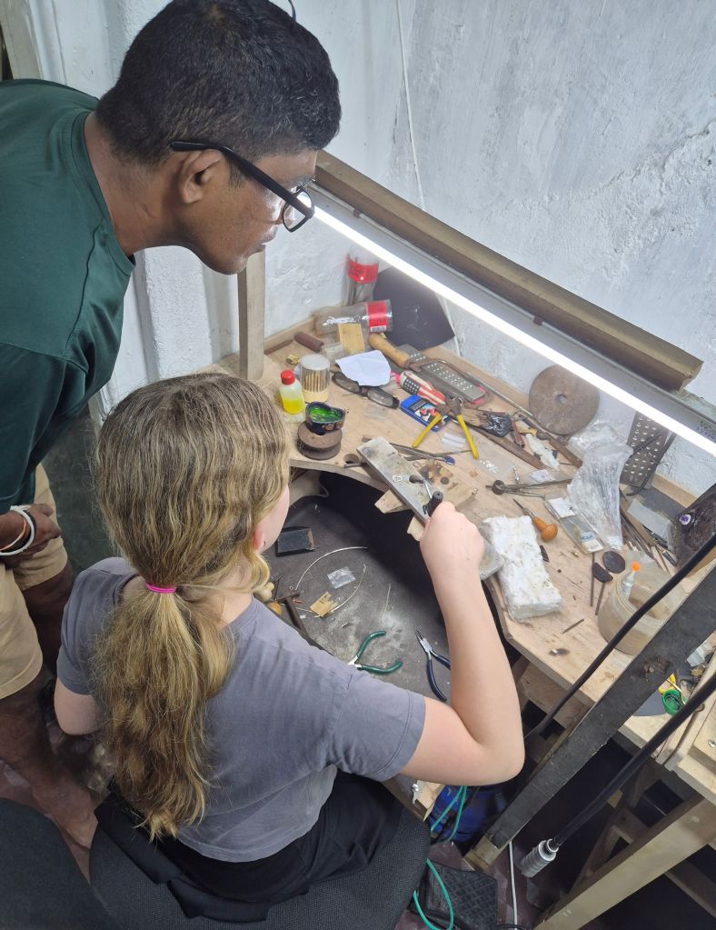 We stayed in Unawatuna, just next to the colonial old town of Galle (very pretty and equally expensive). One of the things to do in this area is silversmithing and we found a tiny place just near our accommodation that offered classes. After the fun we had making our own rings in Java I thought this would be a good activity, this time with gems! (oooh sparkly 🤩)