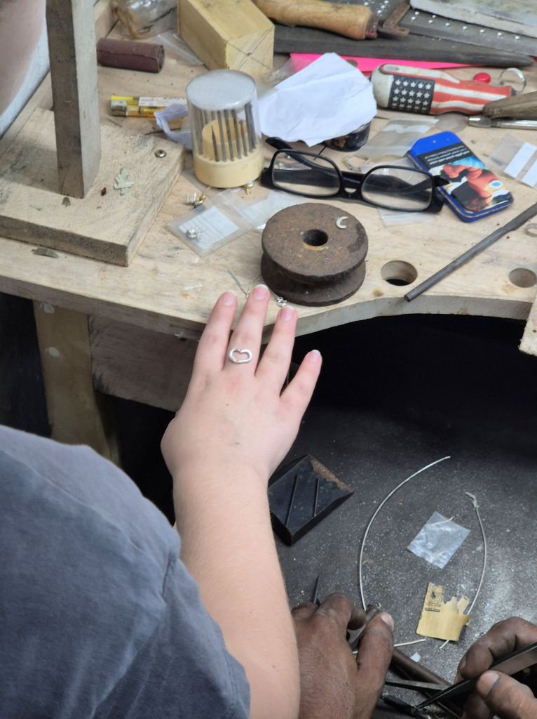 The heart shaped ring was a bit more tricky with the heart shape needing to be bent and filed, taking patience and time, especially when the two sides aren’t the even length you would hope! (not us, that was the staff’s mistake – but they got it sorted)