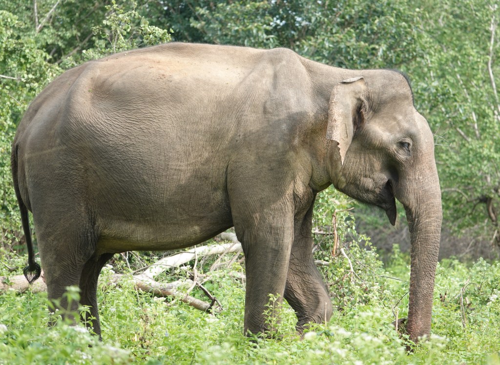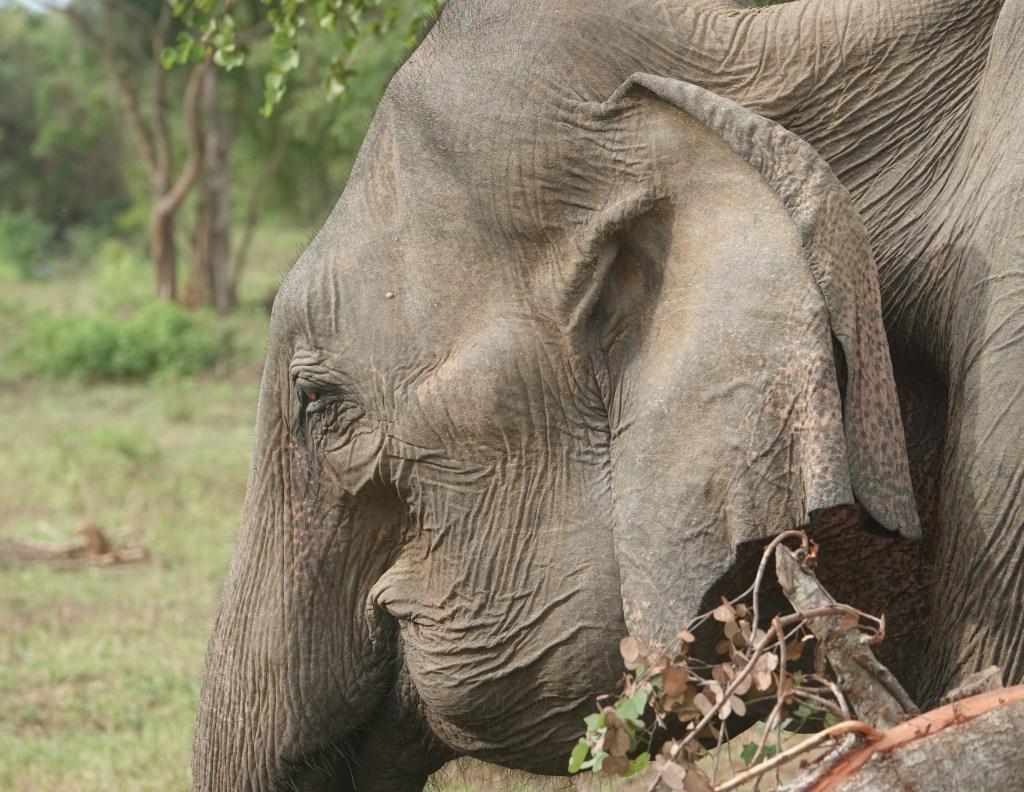 With the guide, off we set to see elephants, many of which are from the elephant orphanage (Elephant Transit Home) next door. Therefore, they are relatively tame and very tolerant of the jeeps and noise so they just hang about wherever they want, which can be quite close to the road.