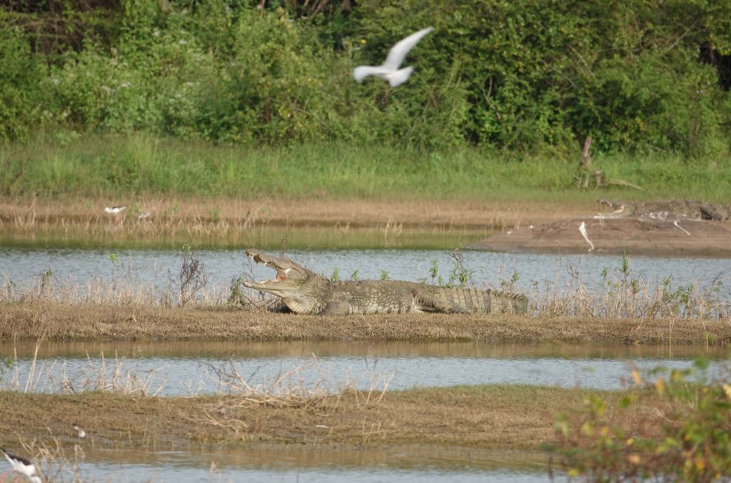At the lake area where we stopped with many other jeeps, we could see crocodiles yawning.