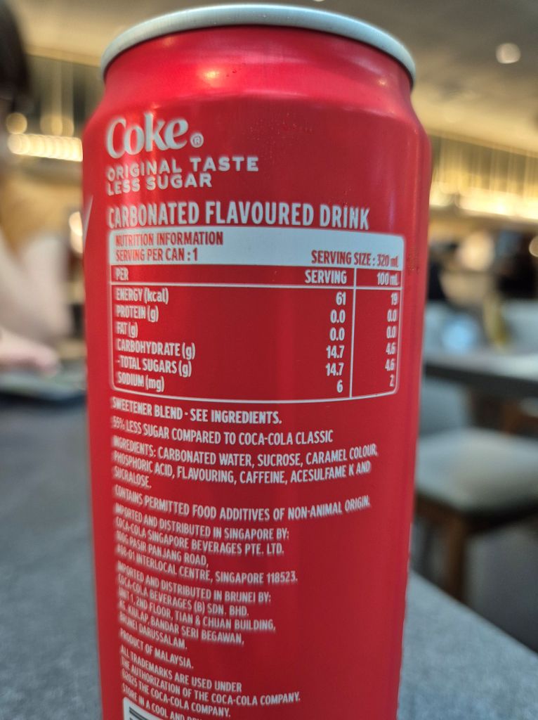 Malaysia went even further with a 55% Less Sugar version and, again, I couldn’t taste the difference. And yes the full sugar version was available in both places, so you had a choice, which was great.